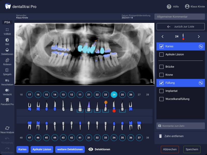 „Mit dem neuen Tool sparen wir nicht nur wertvolle Arbeitszeit, sondern können unsere Patienten noch besser in die Diagnose einbeziehen. Die Röntgenbilder zeigen wir ihnen ab sofort einfach am iPad, das Tool dentalXrai markiert hier Infektionen und Karies farbig. So sind Röntgenbilder und die Diagnose für jedermann leicht zu verstehen“, erklärt ZA Klaus Kirste die Beweggründe, dentalXrai in der Praxis einzuführen.